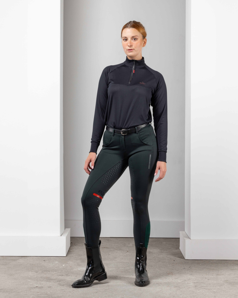 Durch das typisch minimalistische und dabei elegante eaSt Design passt die Reithose perfekt zu allen anderen Teilen der Kollektion. So kannst du nach dem Layering-System immer die passenden Oberteile mit der R2 Performance Dressage kombinieren und von einem technisch wie optisch ausgereiften Outfit profitieren.